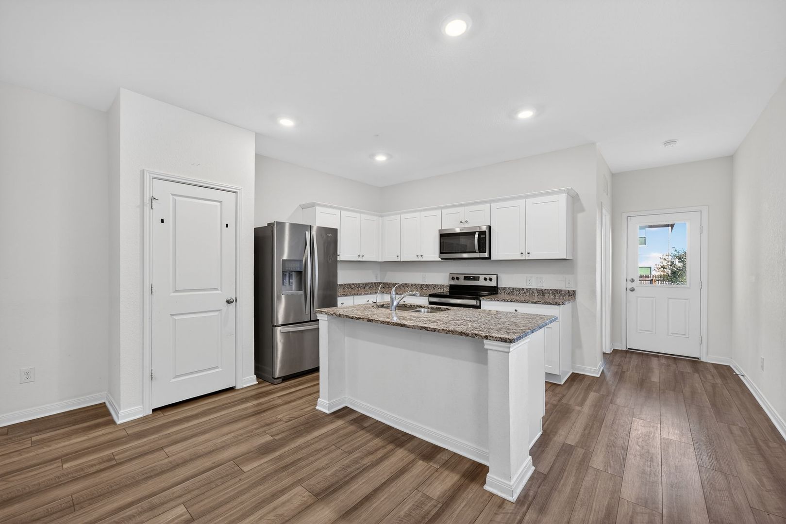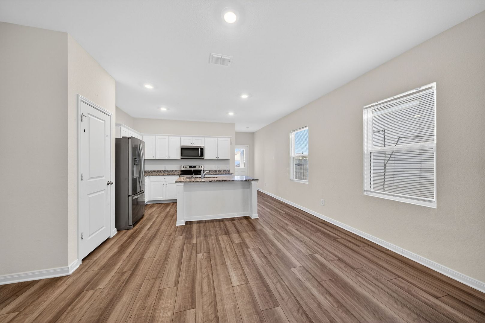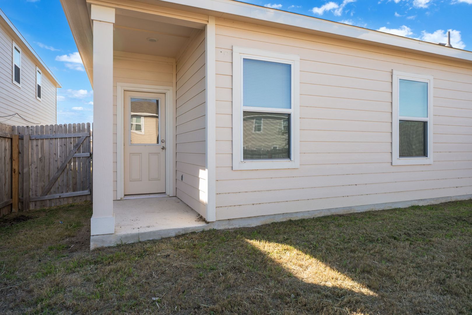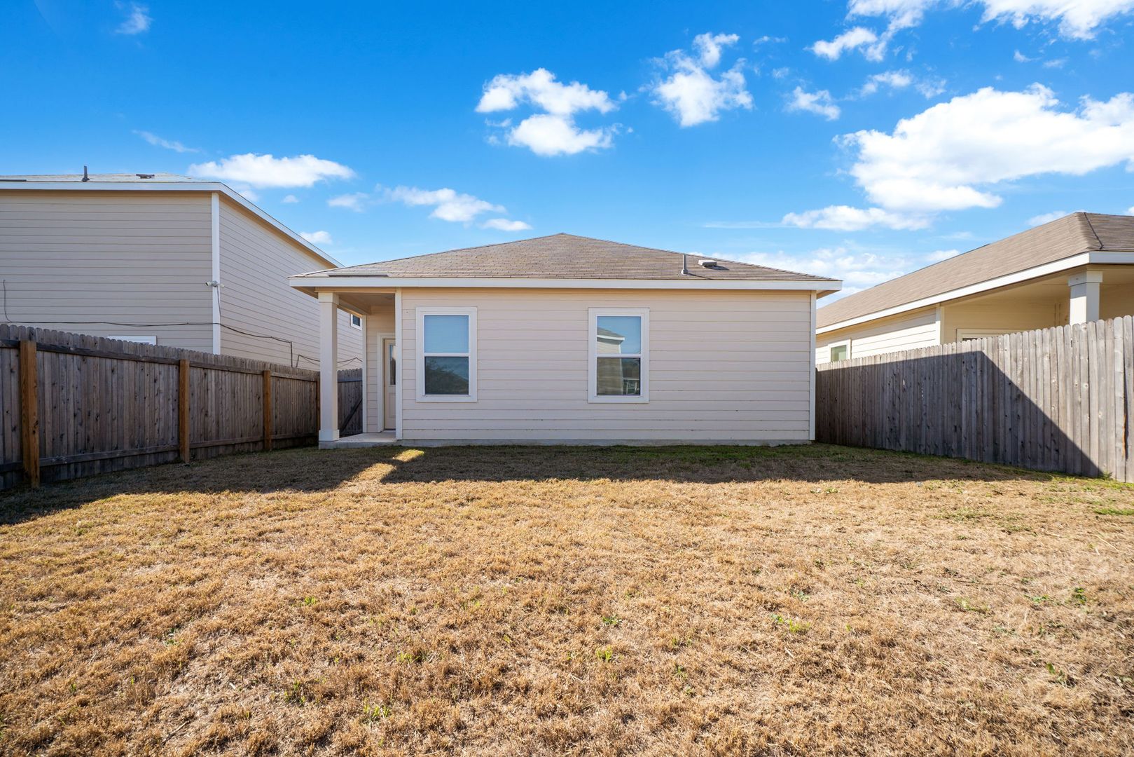 Discover this well-maintained single-story home in the desirable Trails at Culebra subdivision. The interior features luxury vinyl flooring in the entry and kitchen, creating a clean and modern feel. The kitchen offers a center island with bar seating and generous workspace, ideal for everyday living. The home includes a refrigerator, washer, and dryer for added convenience. The primary suite provides a private retreat with a spacious walk-in shower. Enjoy a large, private backyard perfect for relaxing or entertaining. Conveniently located near Canyon State Natural Area, shopping, dining, and major roadways, this home offers both comfort and accessibility.