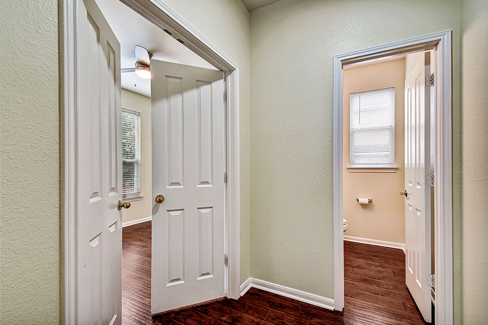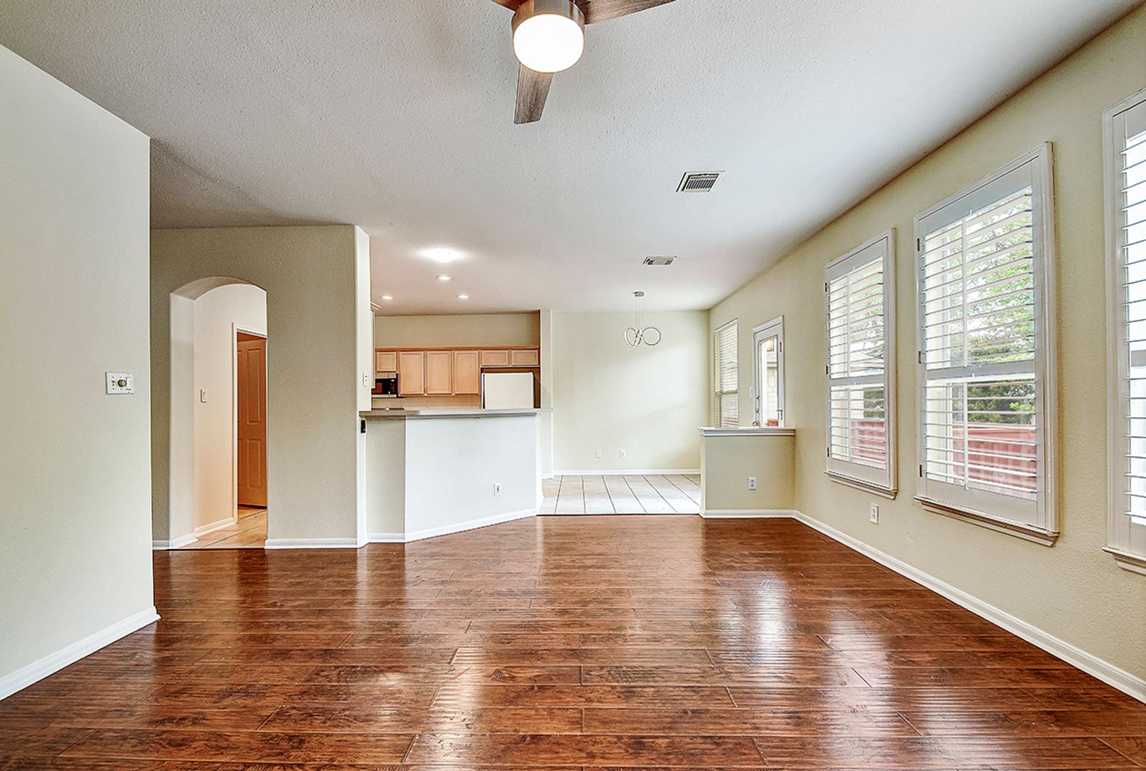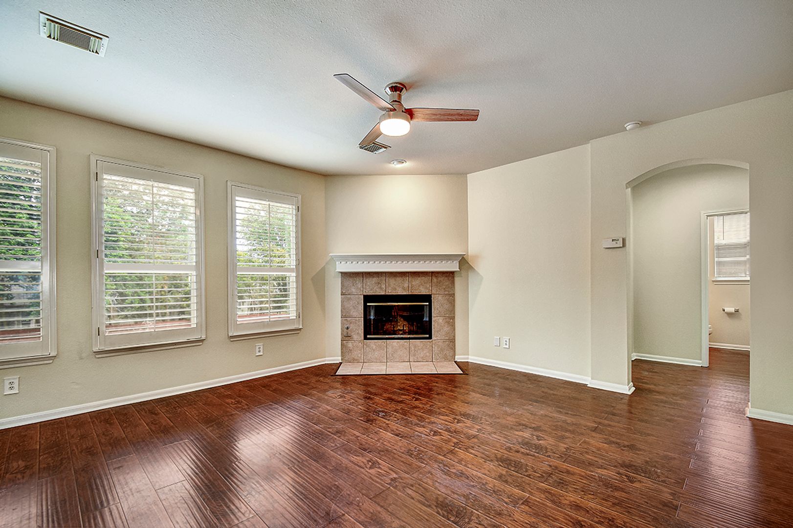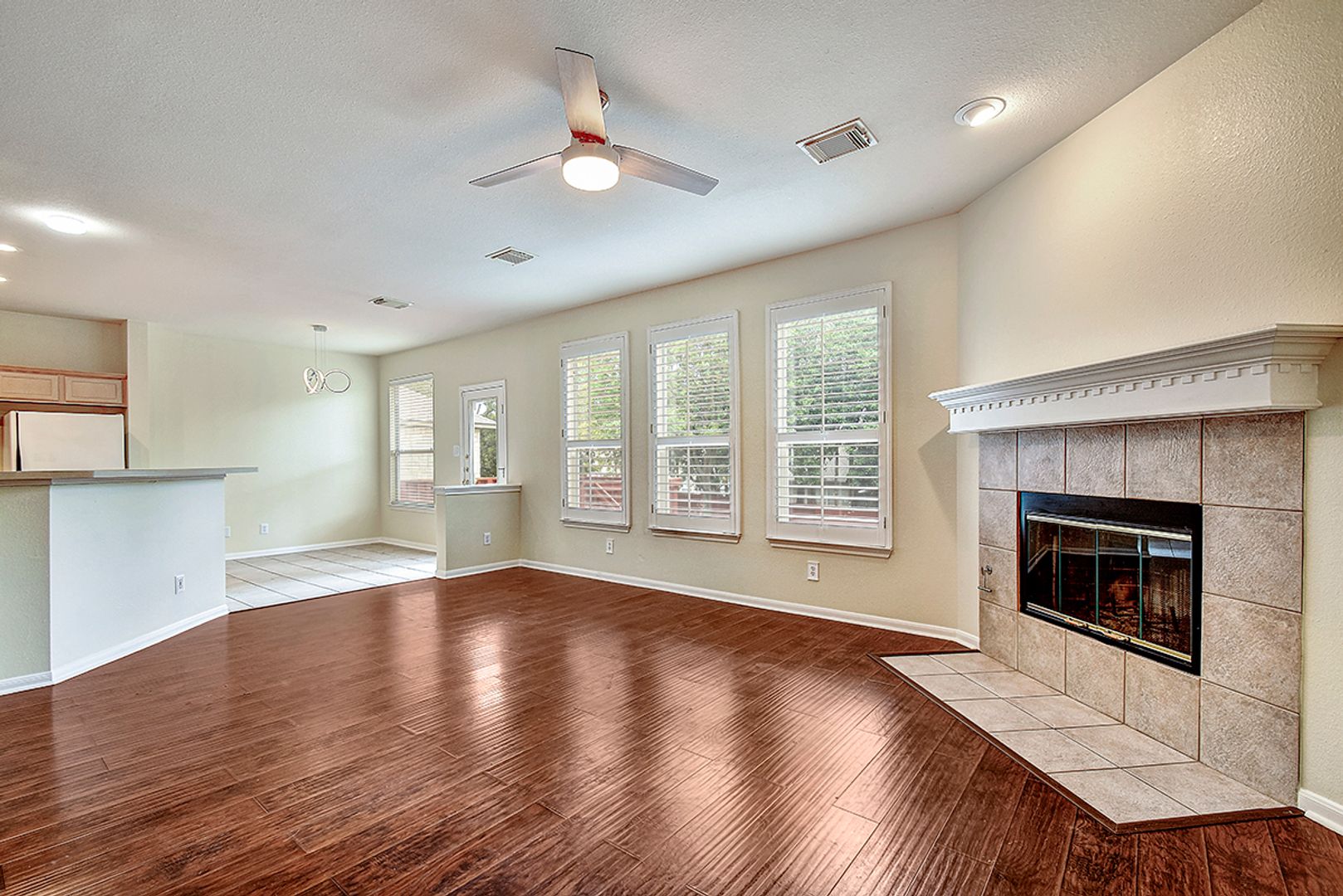 Beautiful and impeccably maintained traditional home located in the highly desirable Waters at Canyon Springs community. The first floor features durable, high-grade wood laminate and ceramic tile flooring throughout. The inviting family room offers a cozy fireplace and elegant plantation shutters, creating a warm and comfortable living space. A private study on the main floor can easily serve as a fourth bedroom, ideal for guests or a home office. Step outside to a spacious deck that overlooks a private backyard-perfect for relaxing or entertaining. Upstairs you'll find the primary suite, secondary bedrooms, and a large game room providing additional living space. The home is located within a top-rated school district and offers convenient access to a community park, playground, and pool located just across the street from the neighborhood.